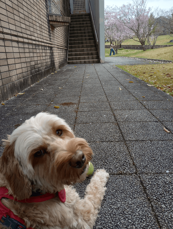 今日は公園に、小中一貫の学校の生徒たちが遠足に来ていました。人なつっこい楽くんは、あっという間に囲まれて、かけっこが始まりました。