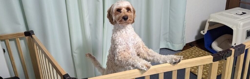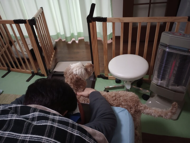 ある日、とても犬好きのお客様が、「別に(柵から施術ルーム)の中に入れてもいいよ、私は」というので、試しに入れてみたのです。結果は・・・